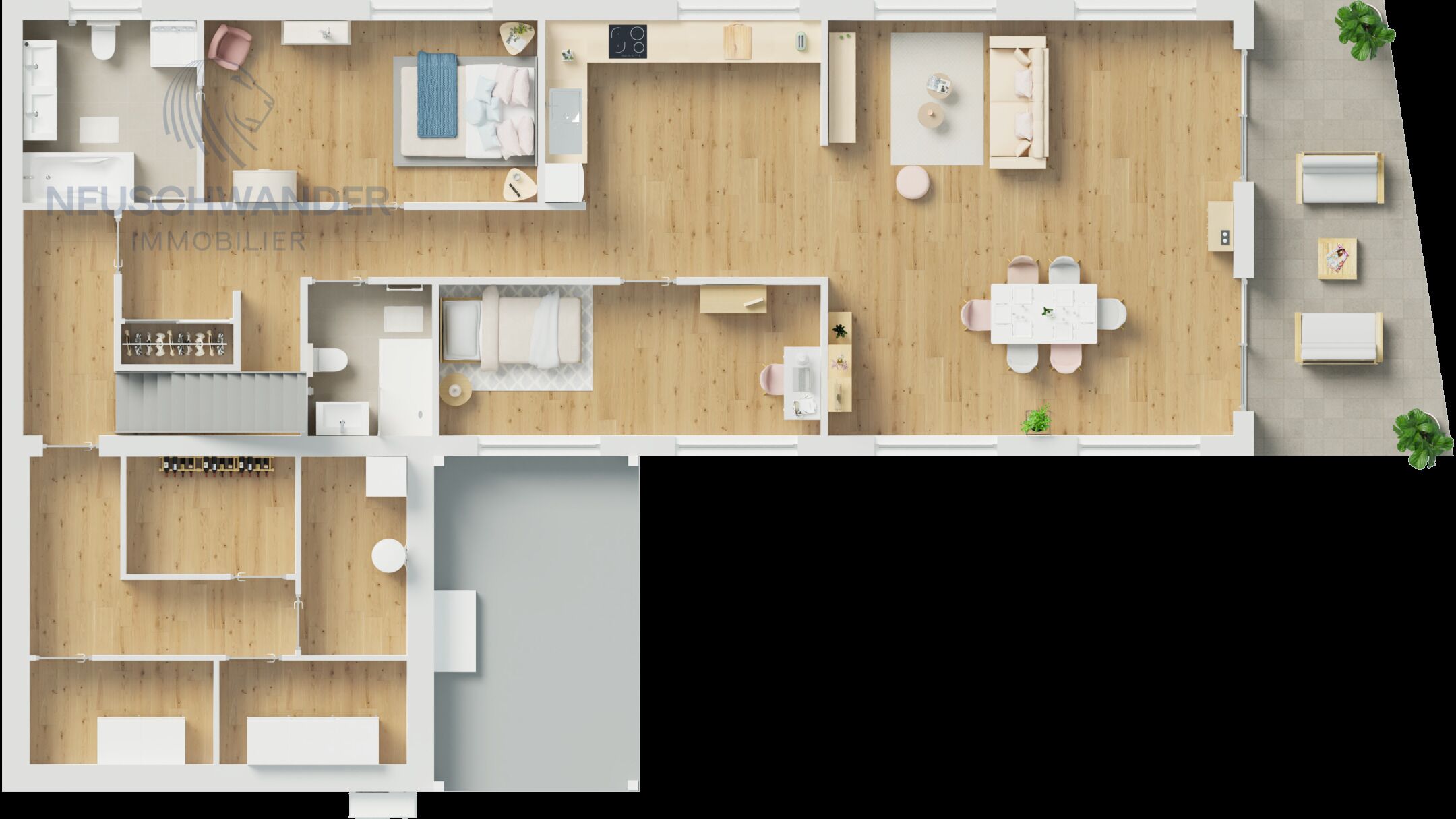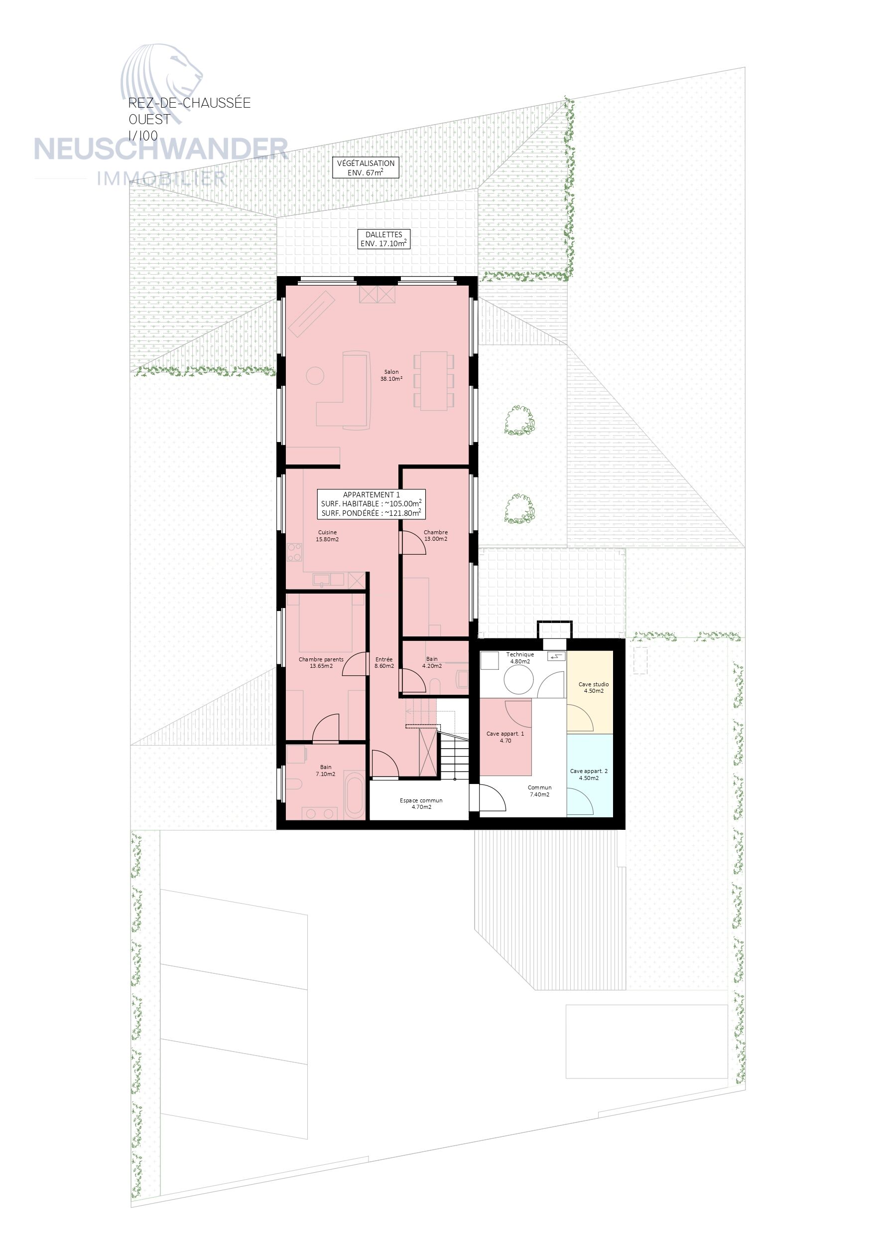 Atout majeur : une spacieuse terrasse orientée ouest prolonge l’espace de vie vers l’extérieur et donne accès à un jardin privatif de 67 m², parfait pour se détendre ou partager un repas en plein air.