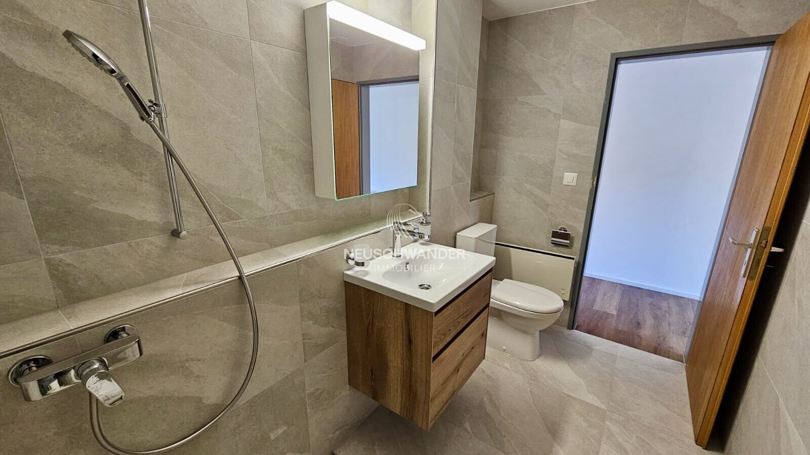 - 1 salle d'eau avec douche/WC/lavabo