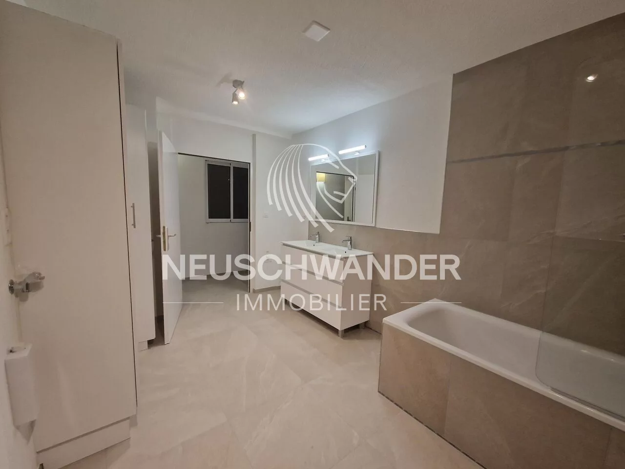- 1 salle de bain moderne avec WC/lavabo double vasque et baignoire
