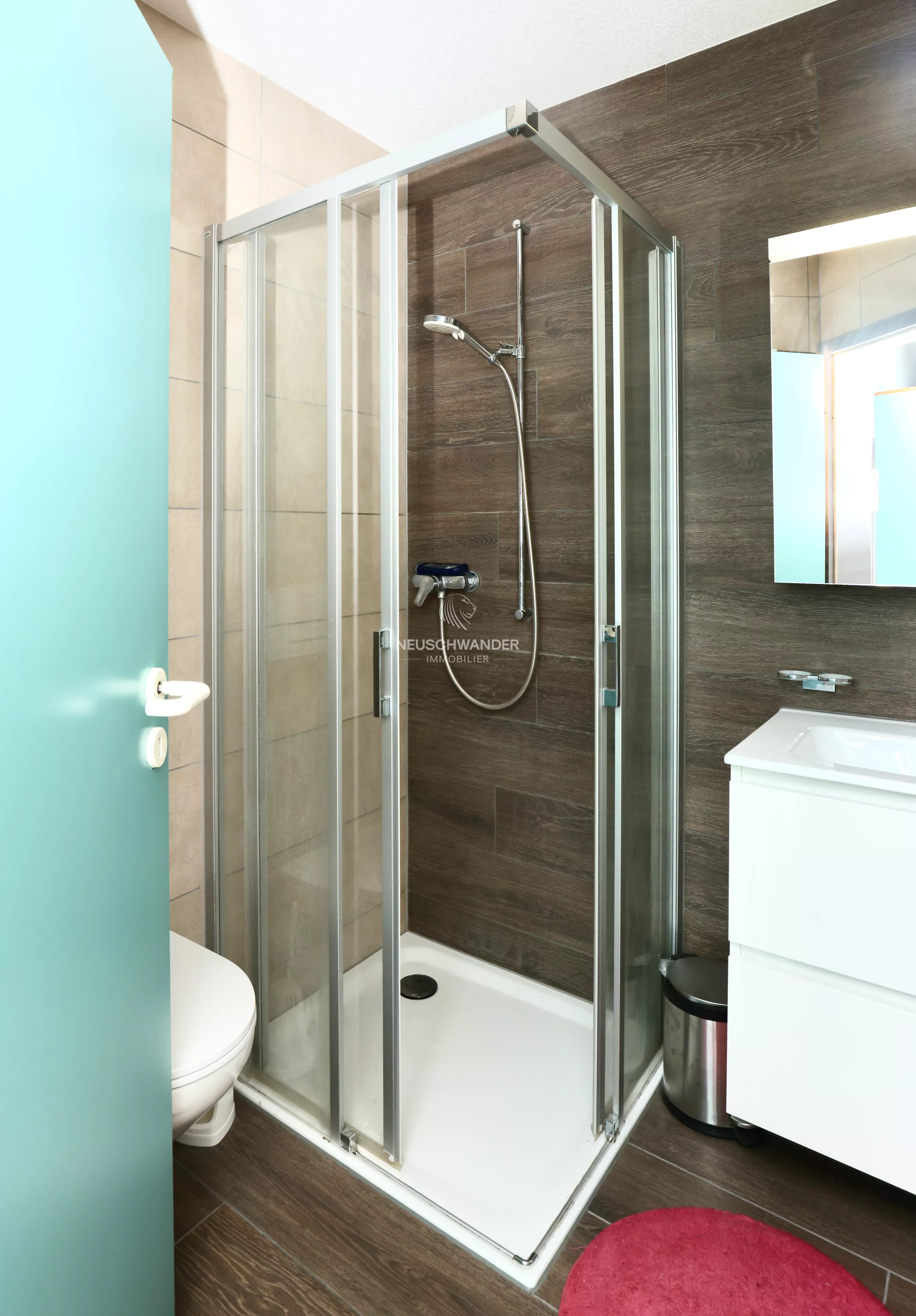 - 1 salle d'eau avec douche, WC, lavabo