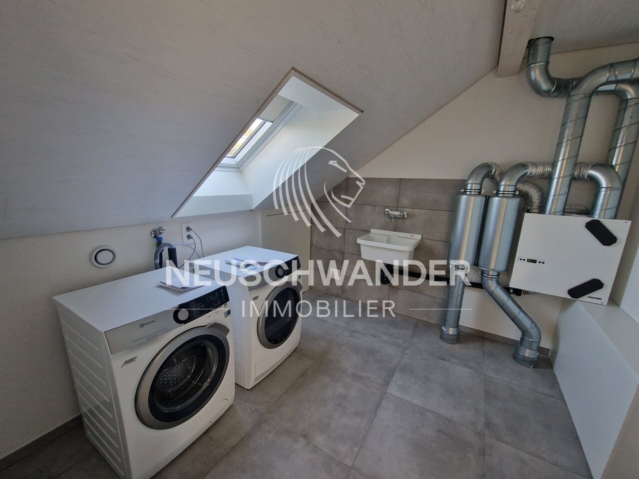 - 1 buanderie de 8.18 m2 avec lave-linge et sèche-linge ainsi que la WMC