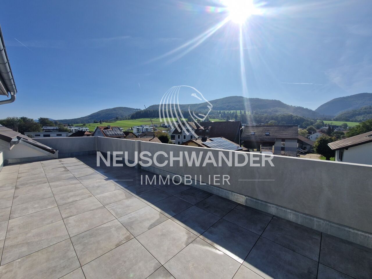 Sur la terrasse avec vue dégagée sur le Raimeux et le Montchaibeux, vous trouverez un store électrique pour les jours les plus ensoleillés.