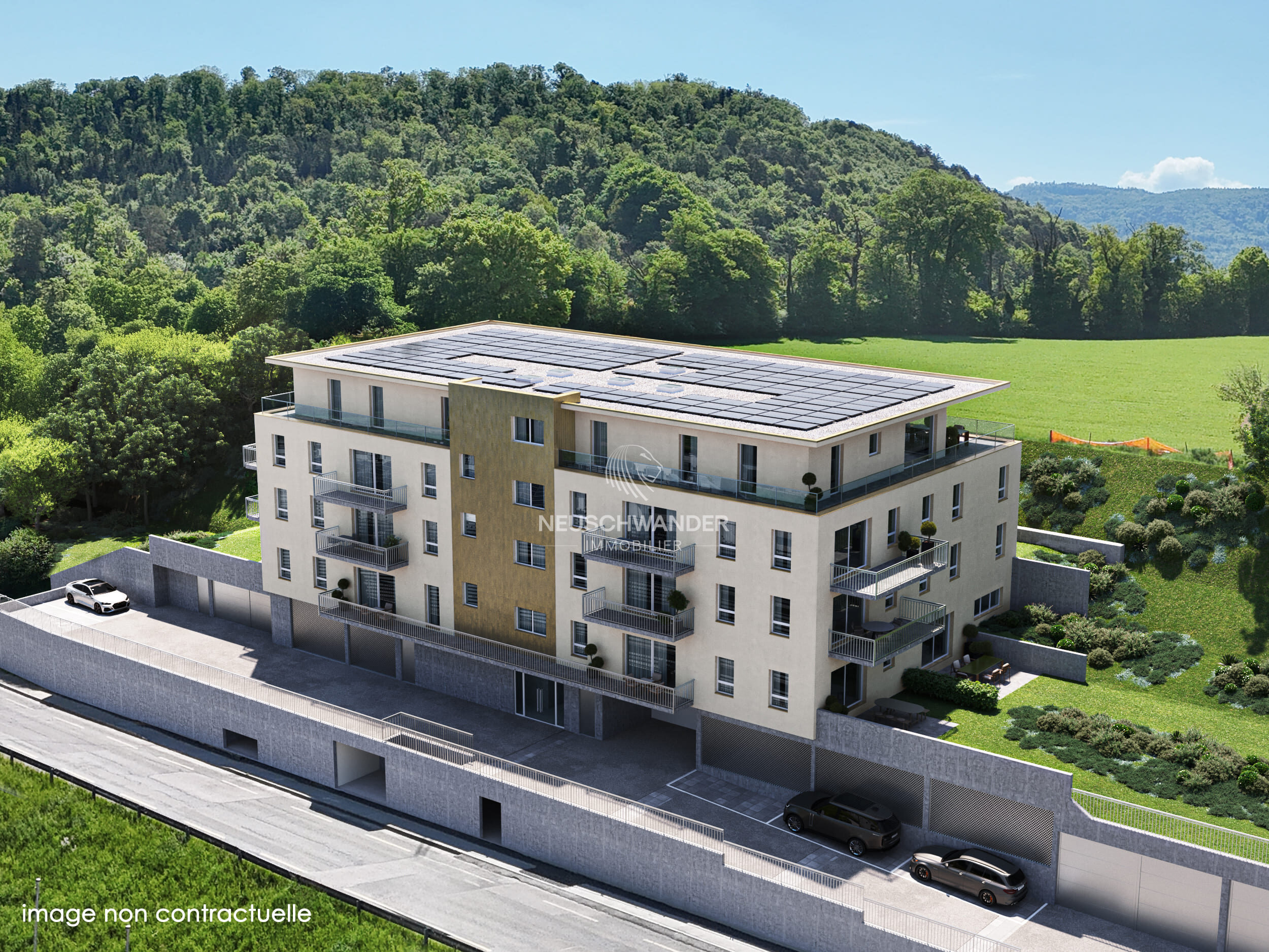 - Inclus dans le prix : la place de parc intérieure et la cave (CHF 25'000.- + CHF 15'000.-)