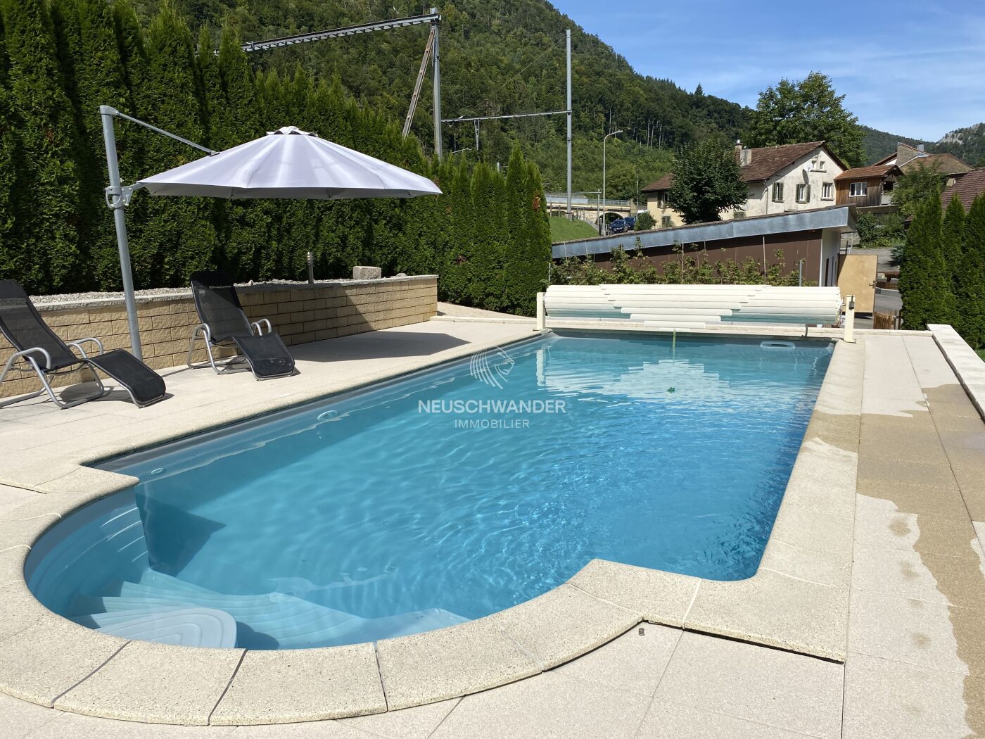 La nature comme voisine, la piscine comme invitation à la relaxation