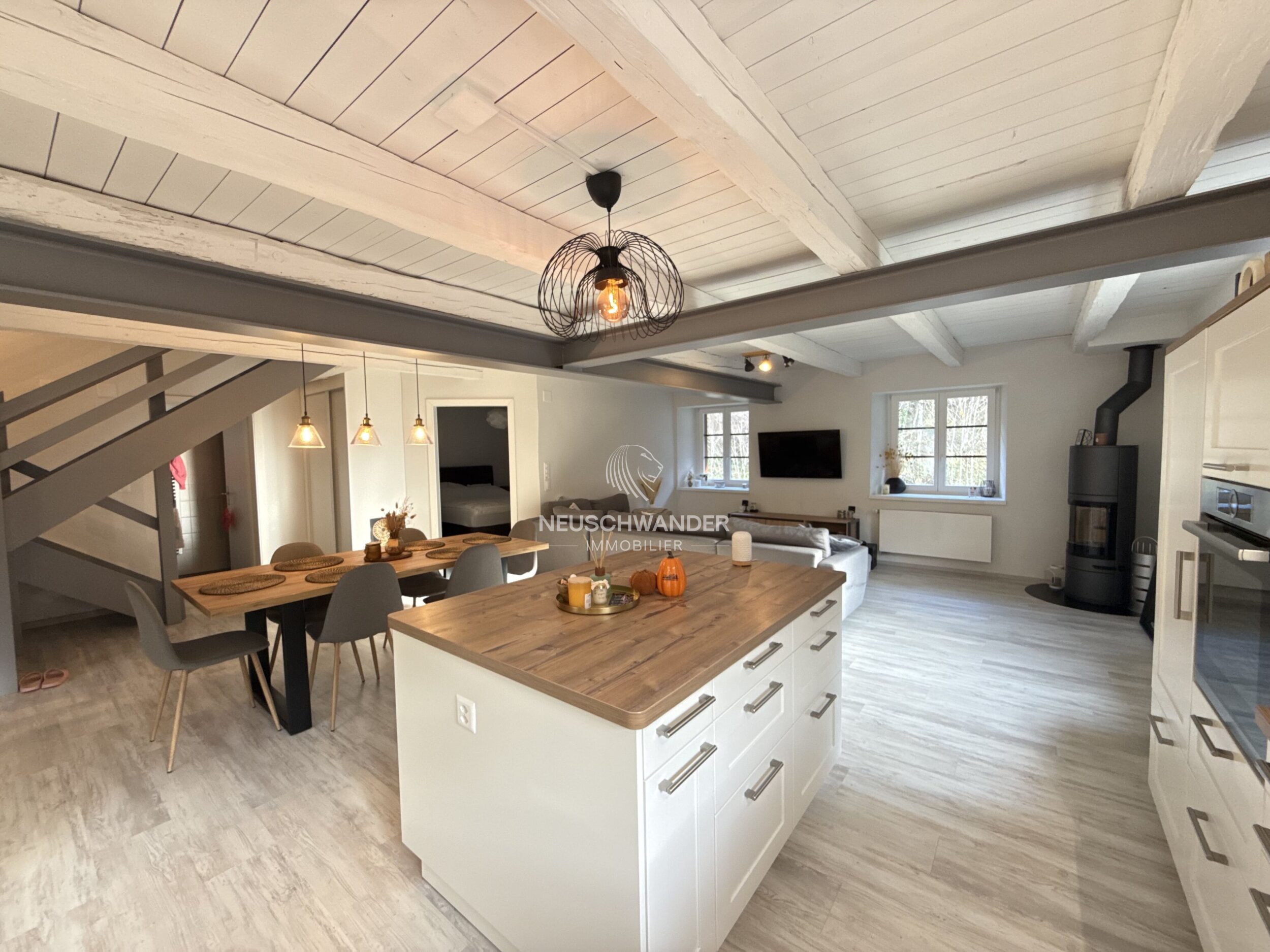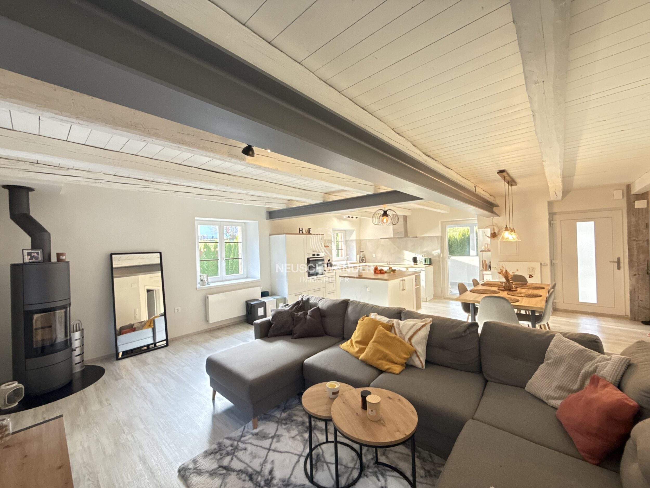 - 1 séjour/salle à manger avec poêle