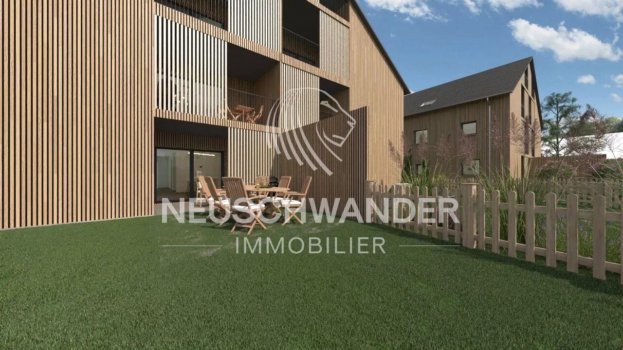 Un magnifique parc arboré et aménagé avec des bancs pour la convivialité et une jolie place de jeux pour occuper les enfants en toute sécurité puisque la route menant aux immeubles est piétonne. Les appartements du rez-de-chaussée disposent d'une terrasse couverte et d'un joli bout de jardin privatif.