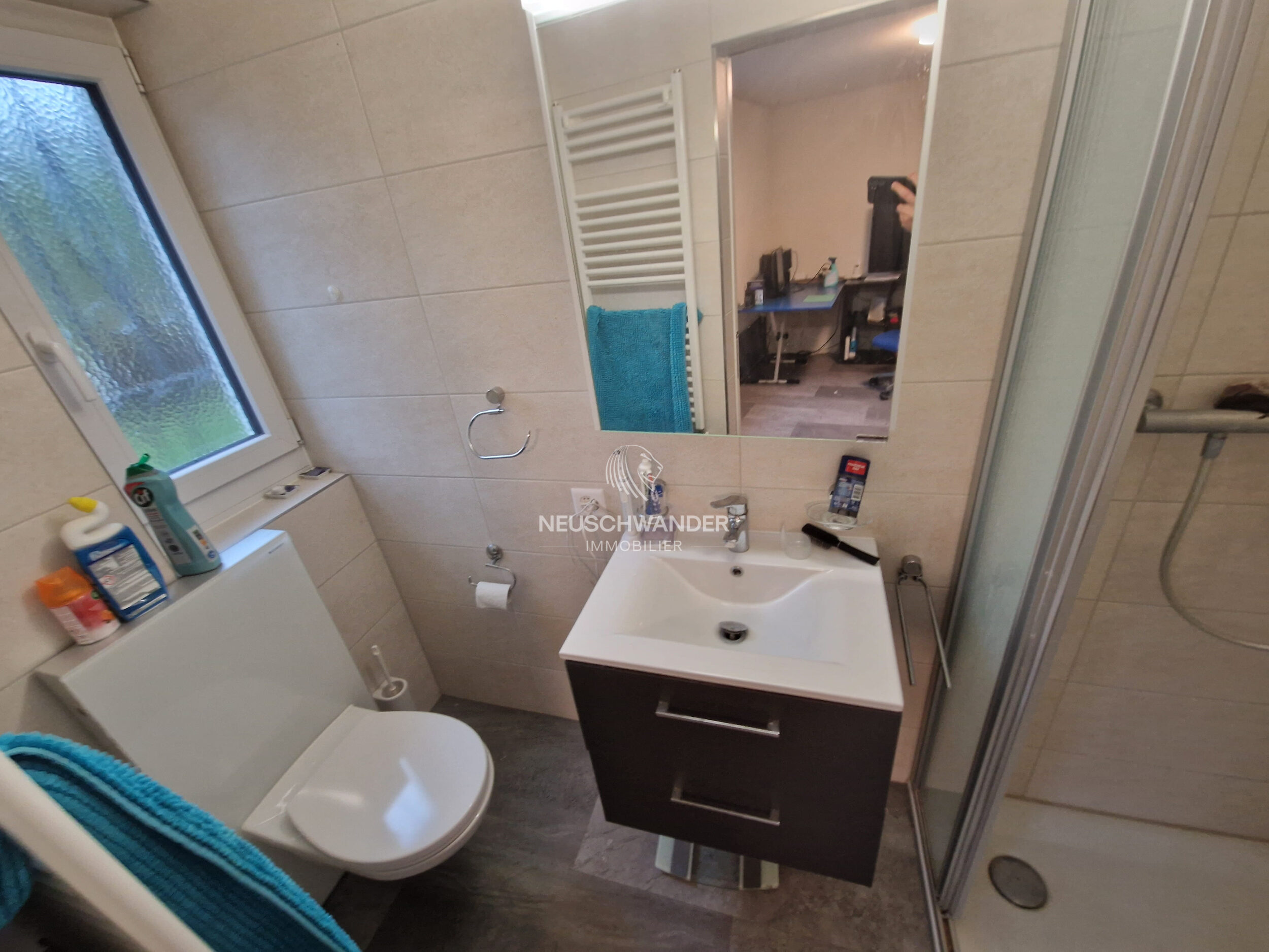 - 1 salle d'eau de 4 m² avec douche/WC/lavabo/radiateur/fenêtre