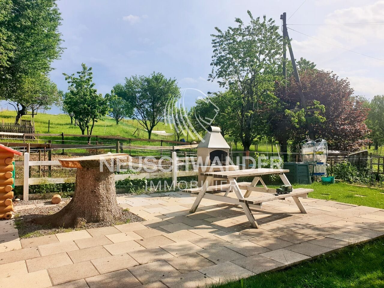 - Joli terrain agricole arboré à disposition des locataires avec table et cheminée/grill