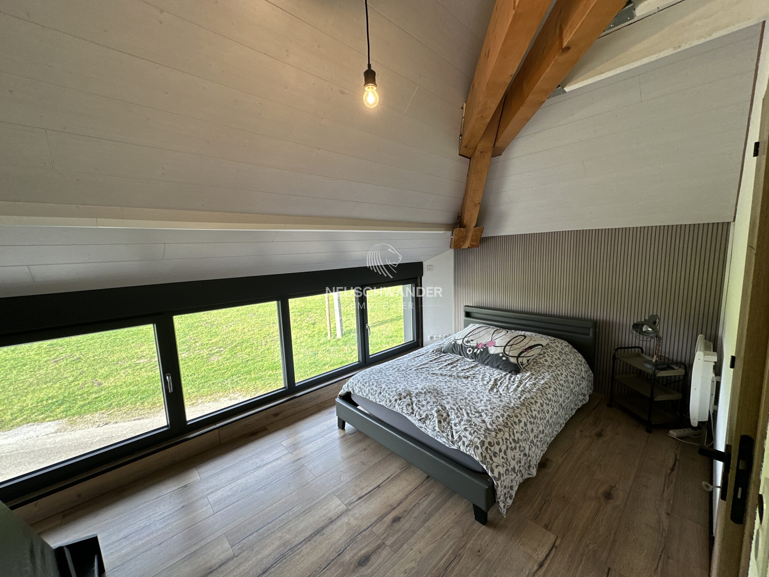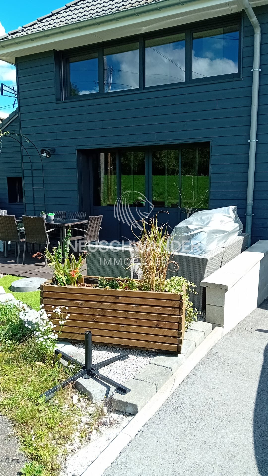 À l’extérieur, vous profiterez d’une agréable terrasse donnant sur une parcelle verte, idéale pour se détendre dans un environnement paisible. L’ensemble forme un véritable havre de tranquillité, parfaitement adapté pour ceux qui souhaitent vivre au calme tout en restant proches de la Suisse.