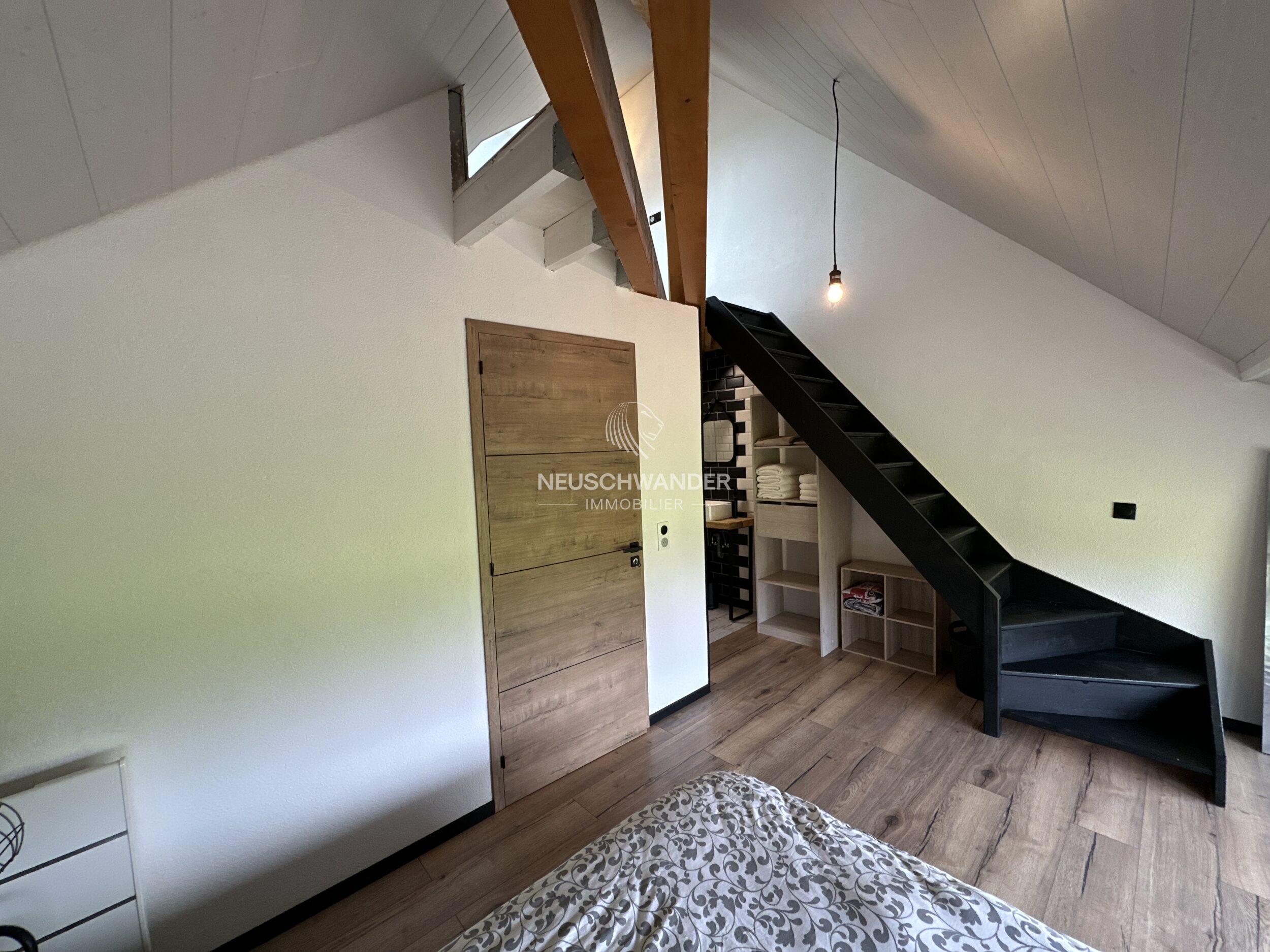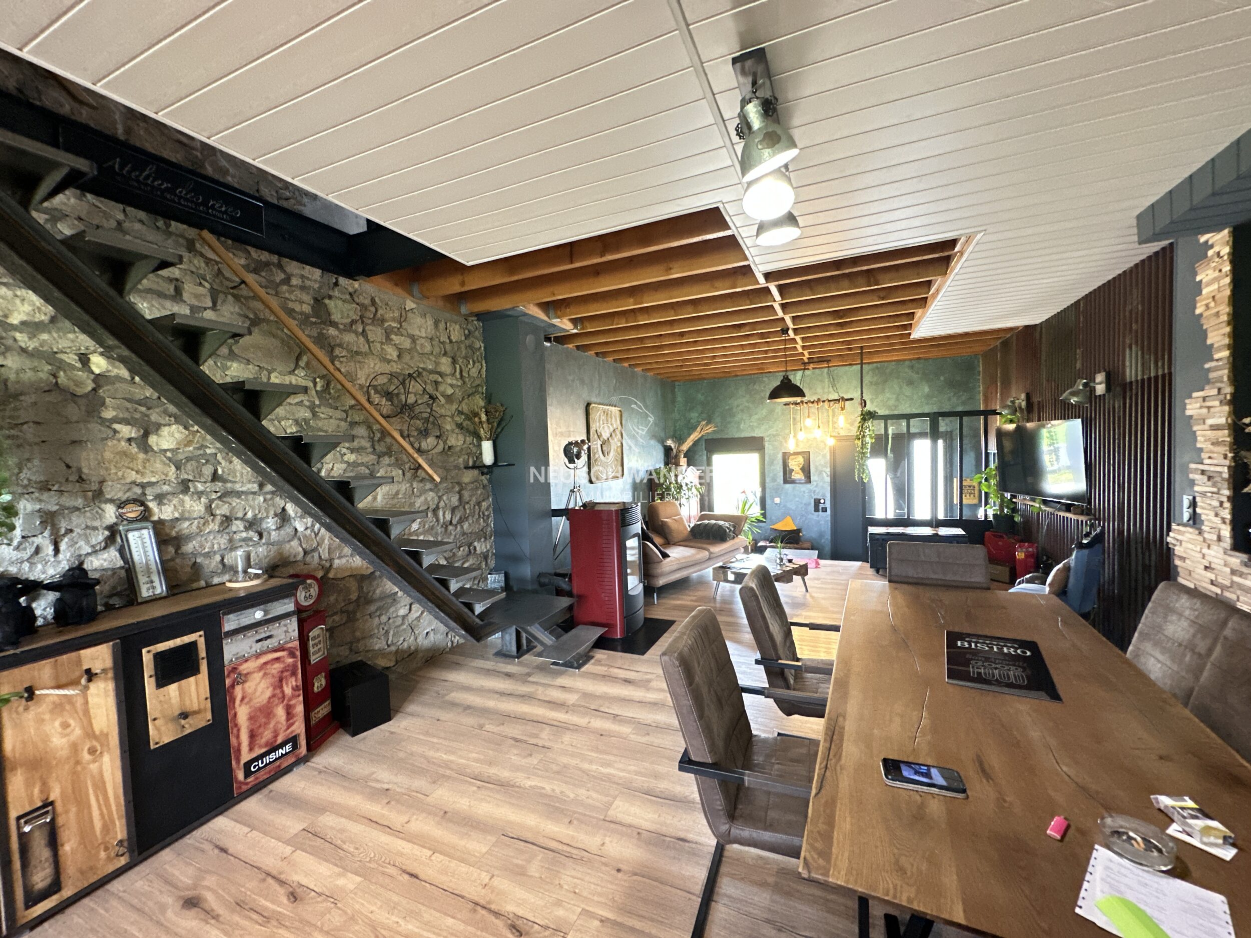 Située dans un environnement particulièrement calme et verdoyant, à proximité immédiate de la frontière suisse, cette maison mitoyenne au style industriel-loft offre un cadre de vie agréable et harmonieux.