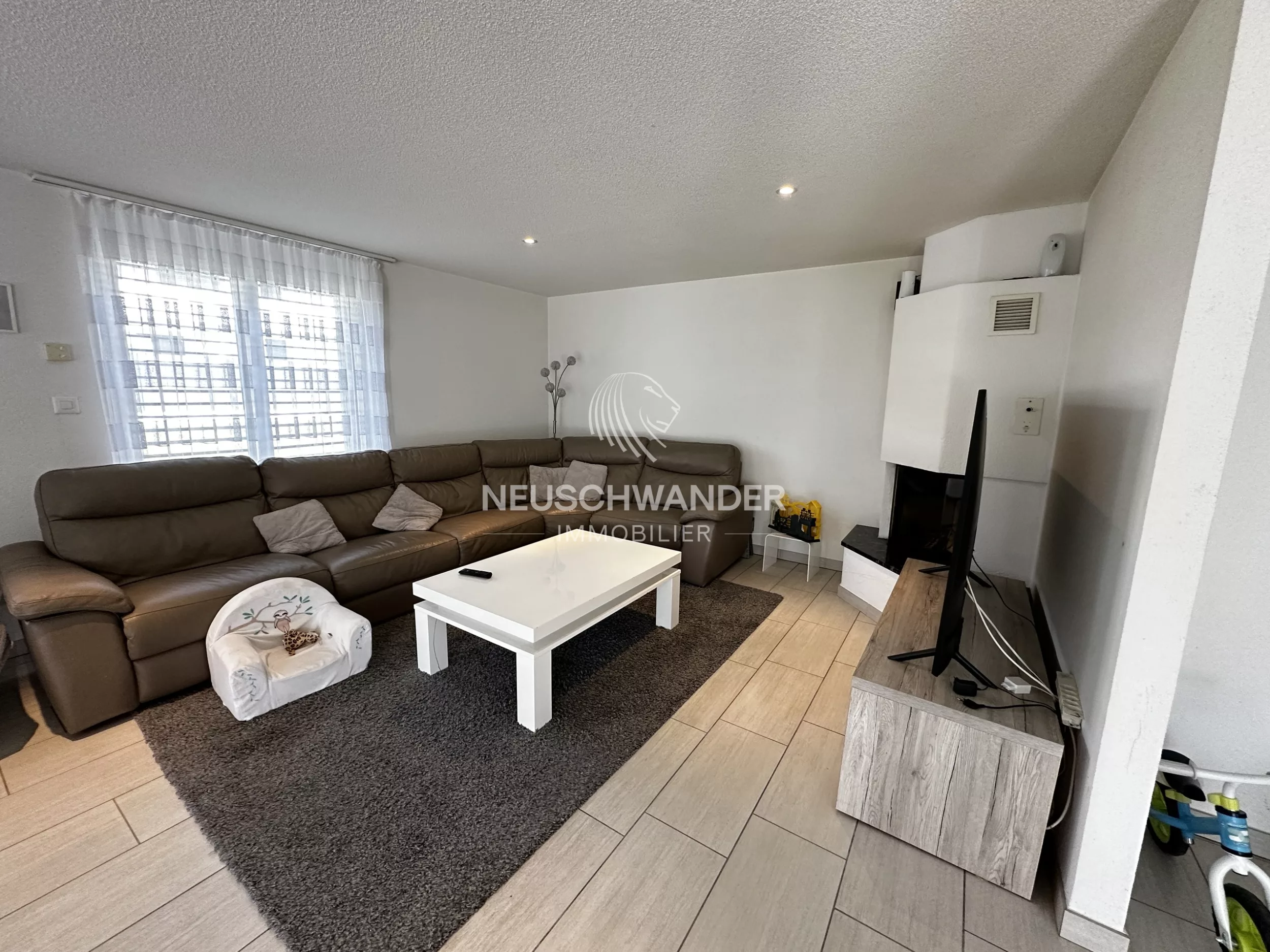Cette maison de 5,5 pièces offre un espace de vie idéal pour une famille. L'environnement est très agréable avec un parc à proximité. Cette dernière se trouve également à proximité des commerces, des services, des transports en commun et un peu plus loin, la gare. Les enfants seront ravis de jouer au parc ou dans le jardin.