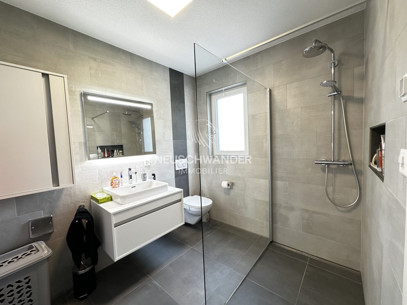 - 1 salle de bains avec douche/WC/lavabo et fenêtre