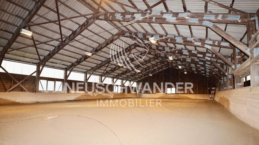La partie équestre est, encore aujourd’hui, pleinement exploitée et comprend une quinzaine d’écuries, un grand manège de 720 m2 (20x36) avec des gradins et un bar situé sur le côté est du bâtiment. Une place sèche, une grange et une sellerie viennent compléter ce superbe complexe équestre.