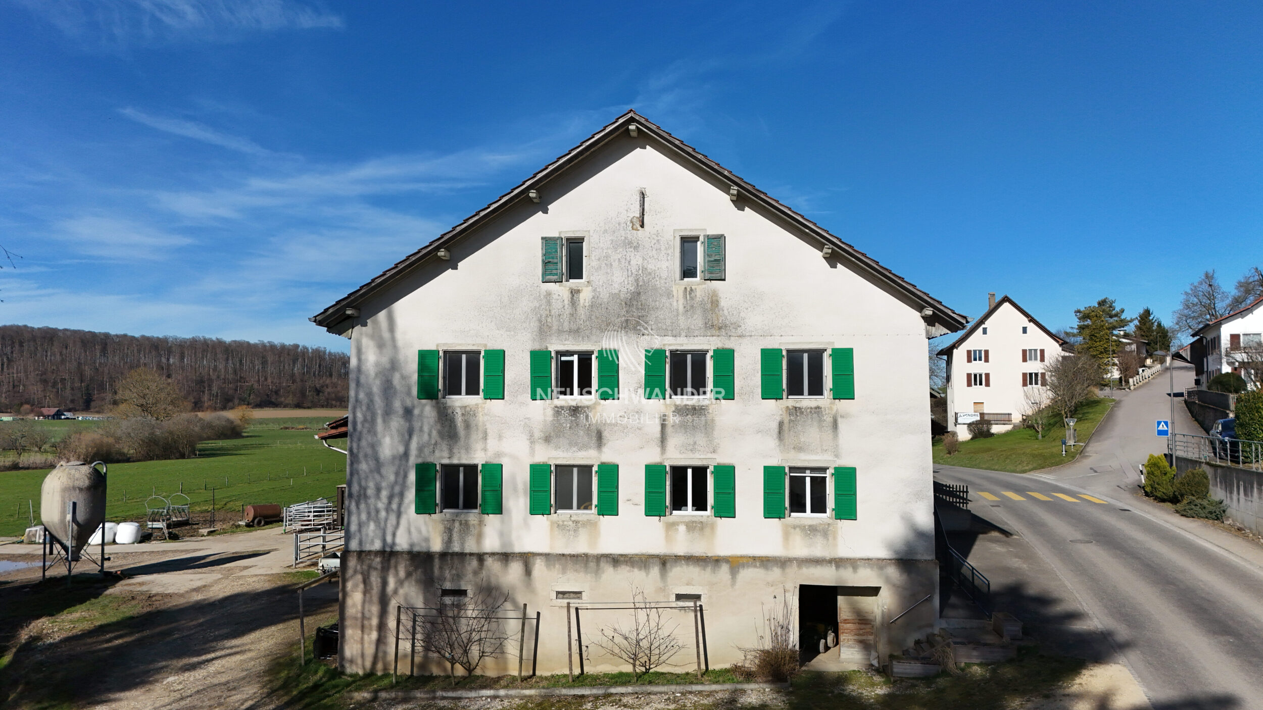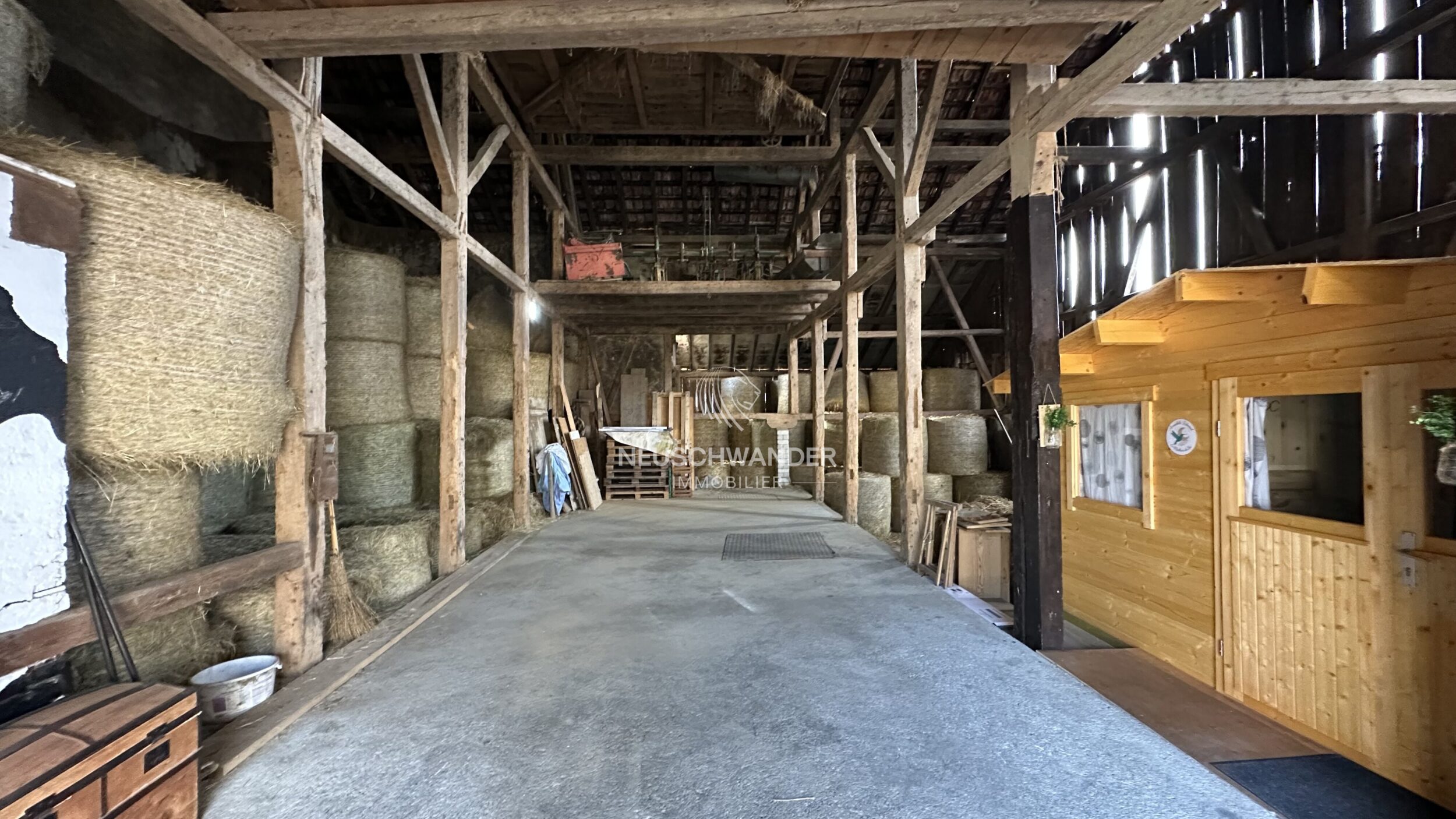 Le bien comprend également une grande grange ainsi qu’une ferme agricole, offrant de nombreuses possibilités d’exploitation, de stockage ou de transformation selon les besoins.