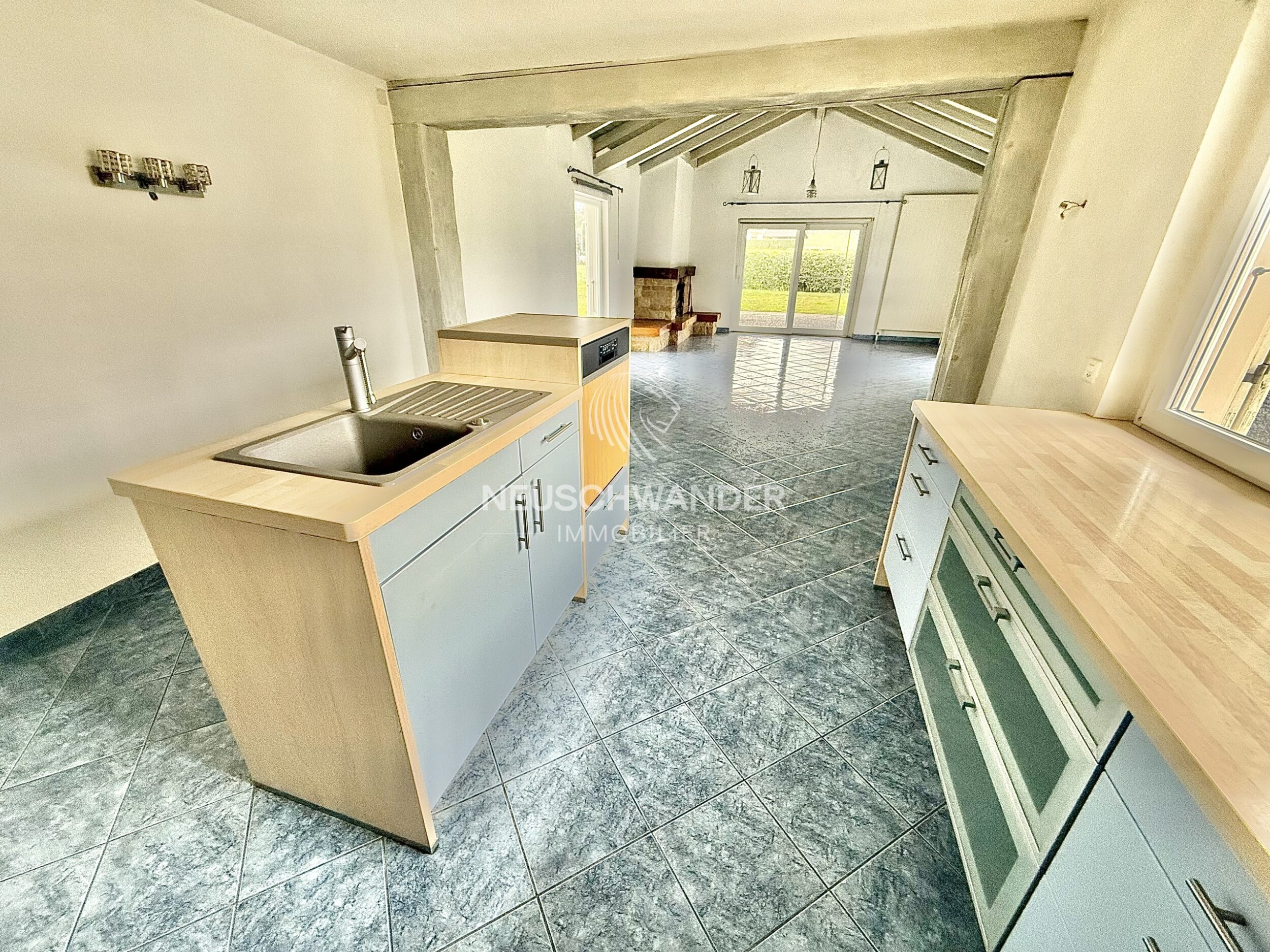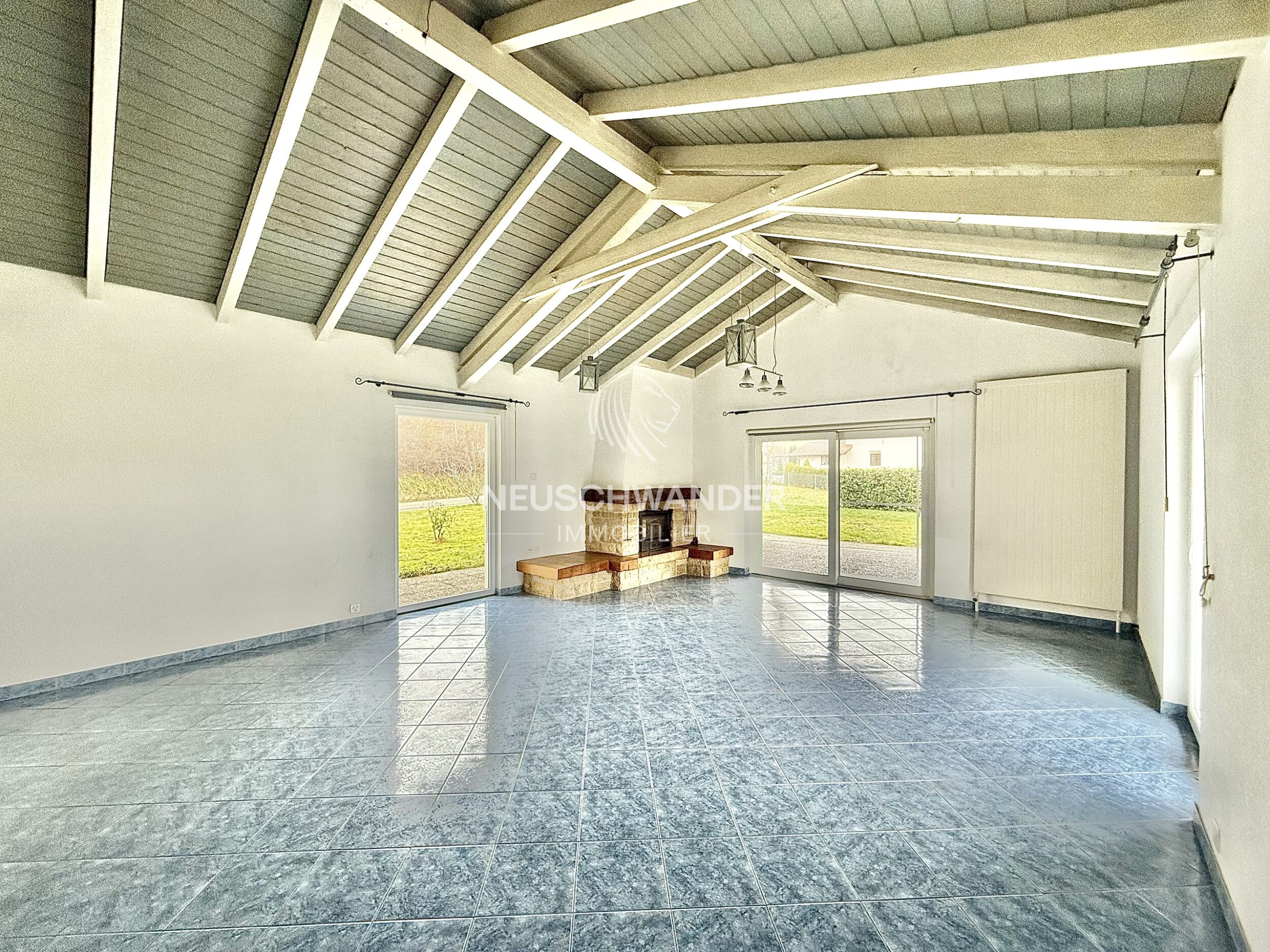 - 1 séjour/salle à manger avec une cheminée de 41 m²