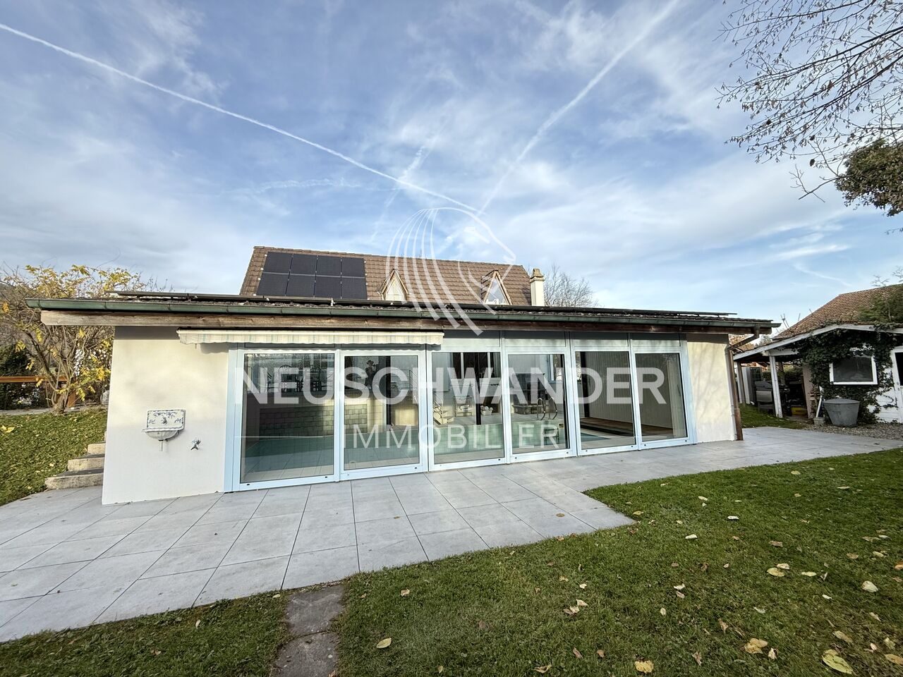 - 1 grande piscine intérieure chauffée par une PAC et de grandes baies vitrées