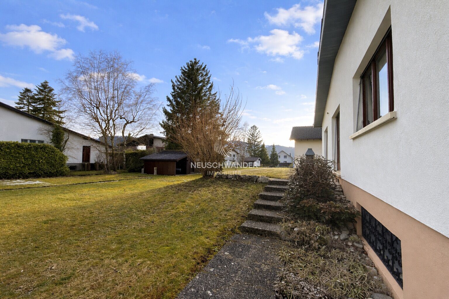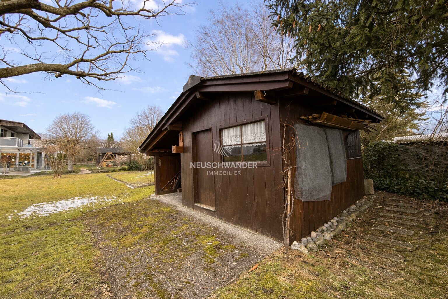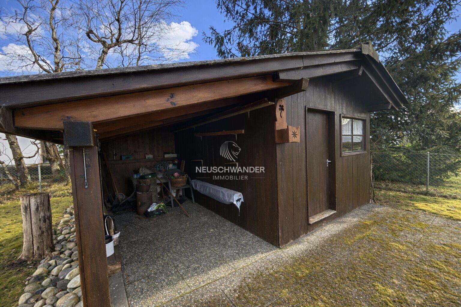 - 1 jardin clôturé et arboré avec une belle terrasse couverte de 13.50 m²