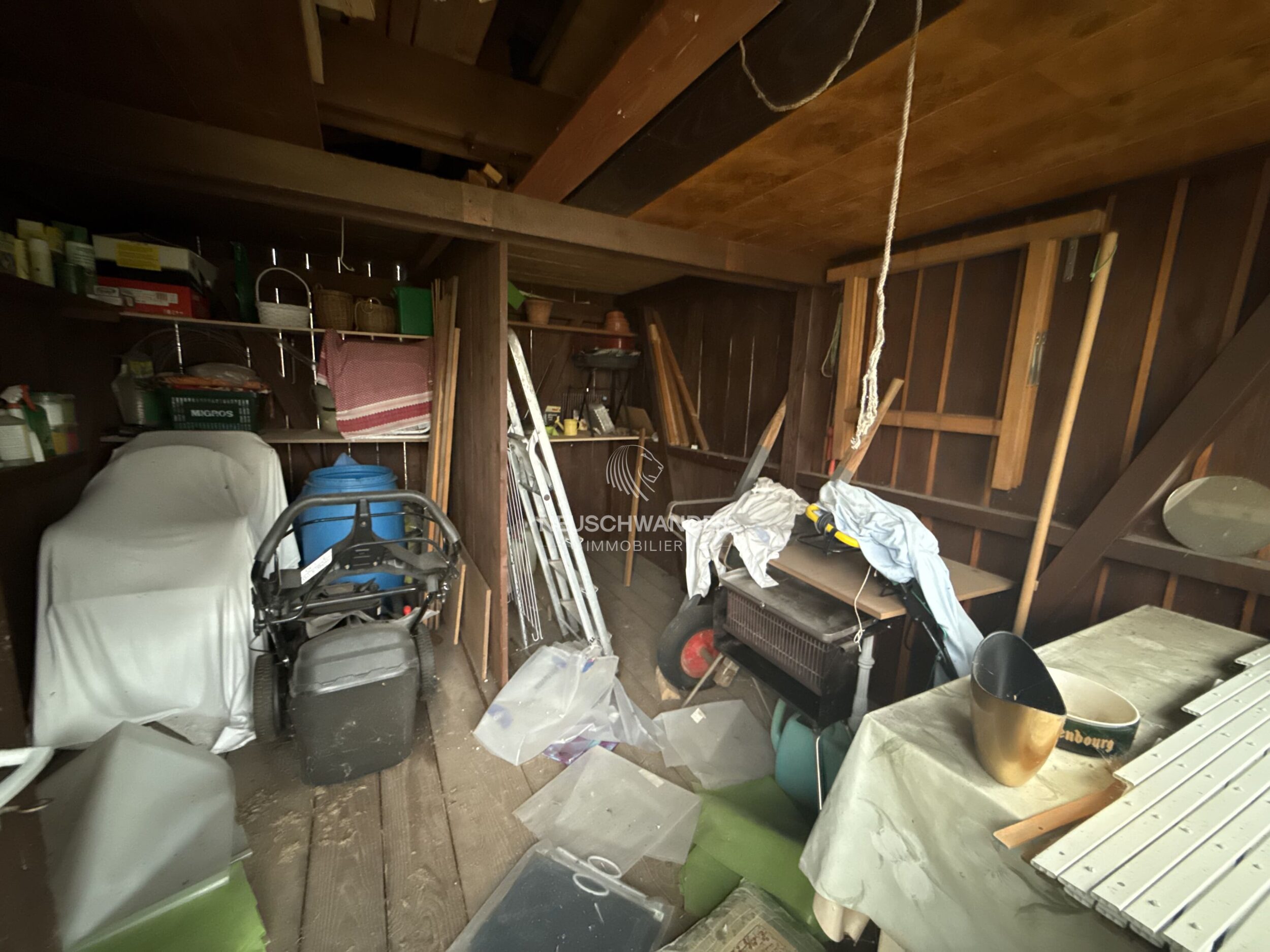 - 1 pièce de rangement actuellement, prévu à la construction comme WC/douche de 5 m²