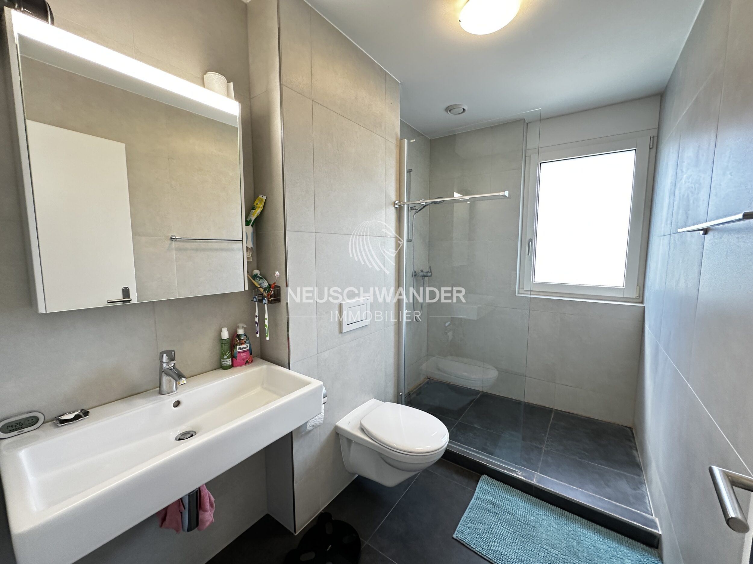 - 1 salle d'eau avec douche, WC, lavabo et fenêtre) 4.3m2