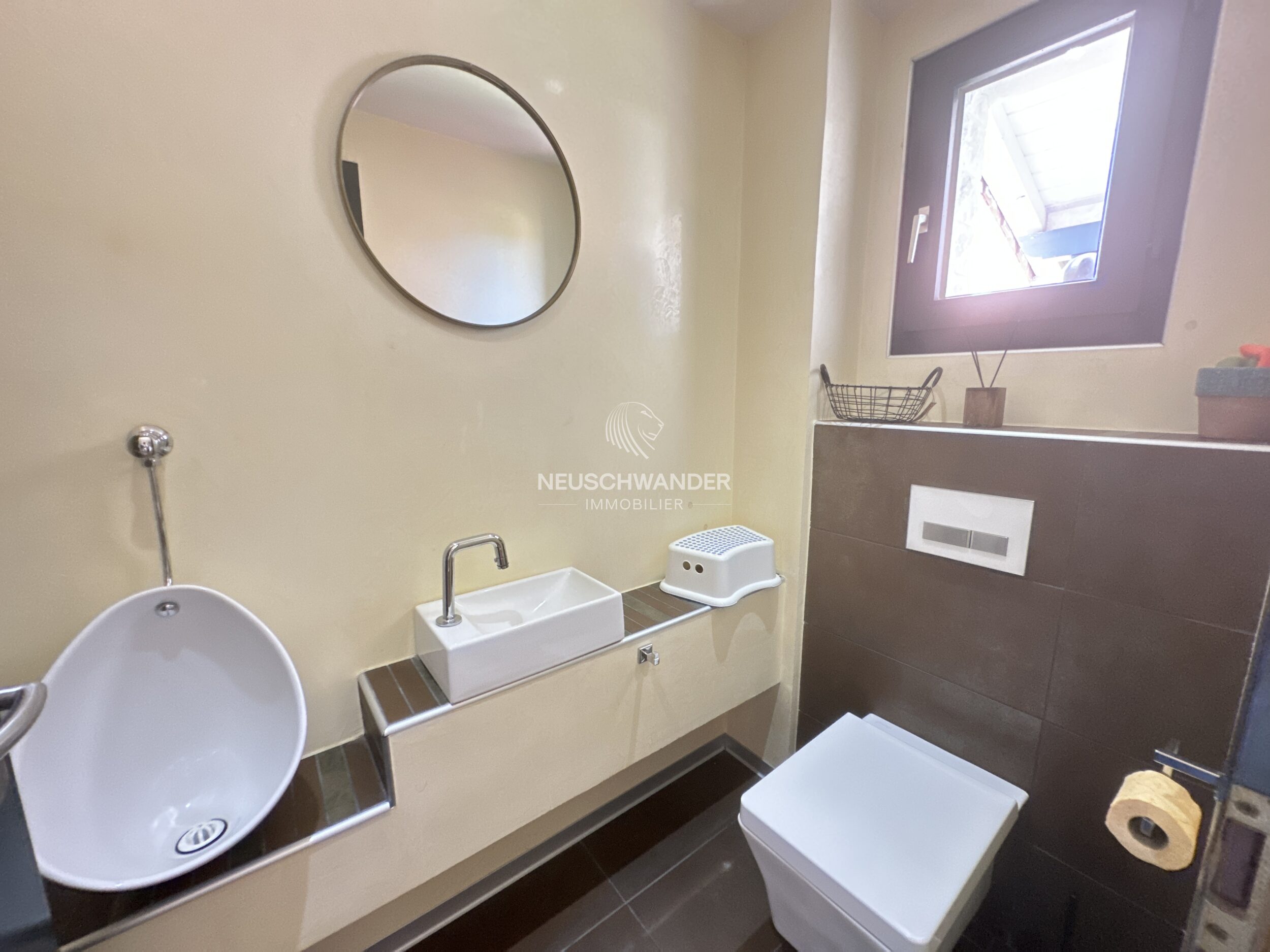 - une salle de bain/fenêtre/wc/douche/baignoire/lavabo