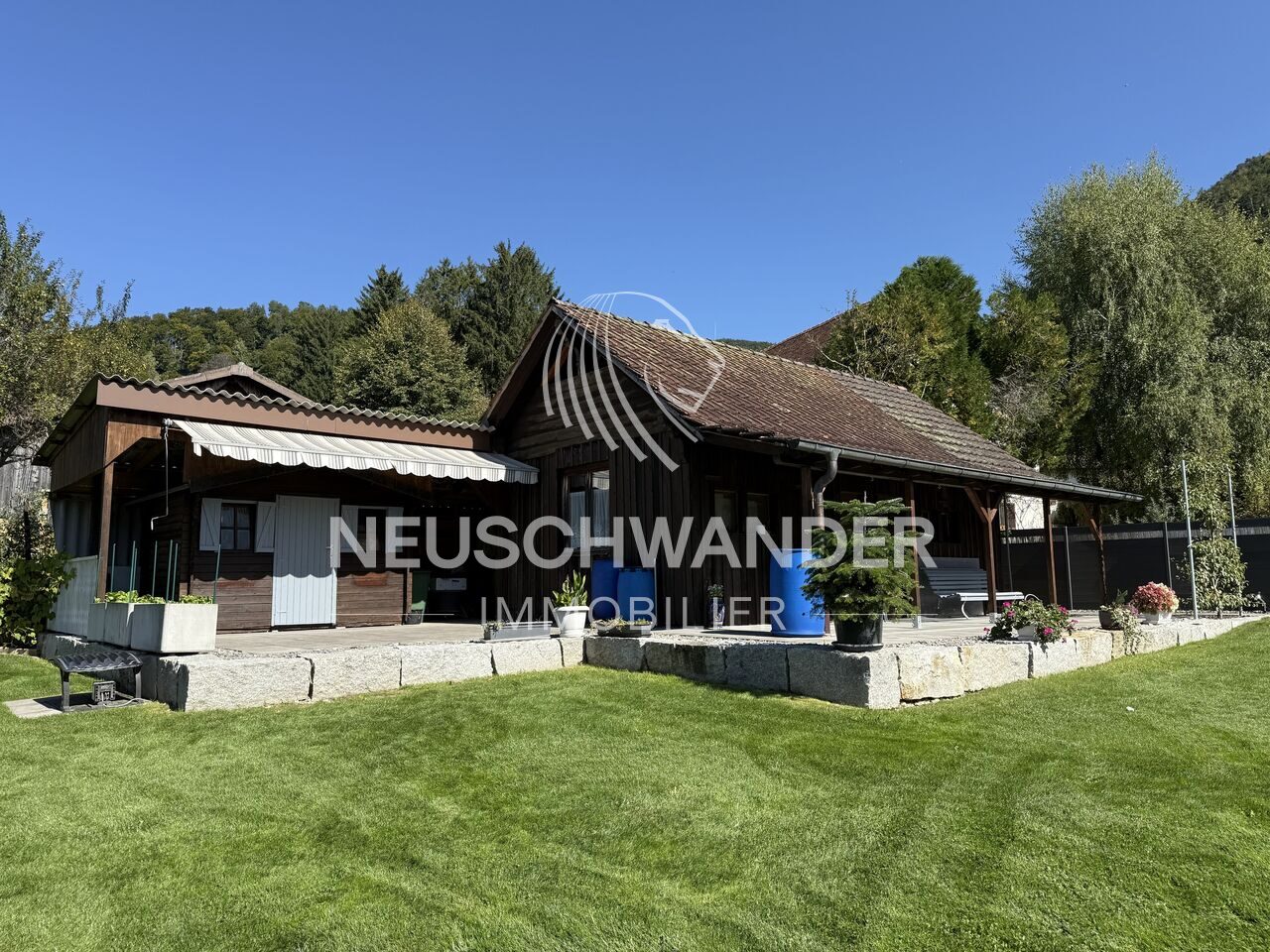 La parcelle se distingue également par son grand jardin soigneusement entretenu, un véritable havre de paix. Cet espace extérieur invite à la détente, aux moments de convivialité ou encore à la création d’un potager. Au fond du jardin, un petit chalet offre un espace supplémentaire idéal pour un atelier, un local de rangement ou un coin loisirs.