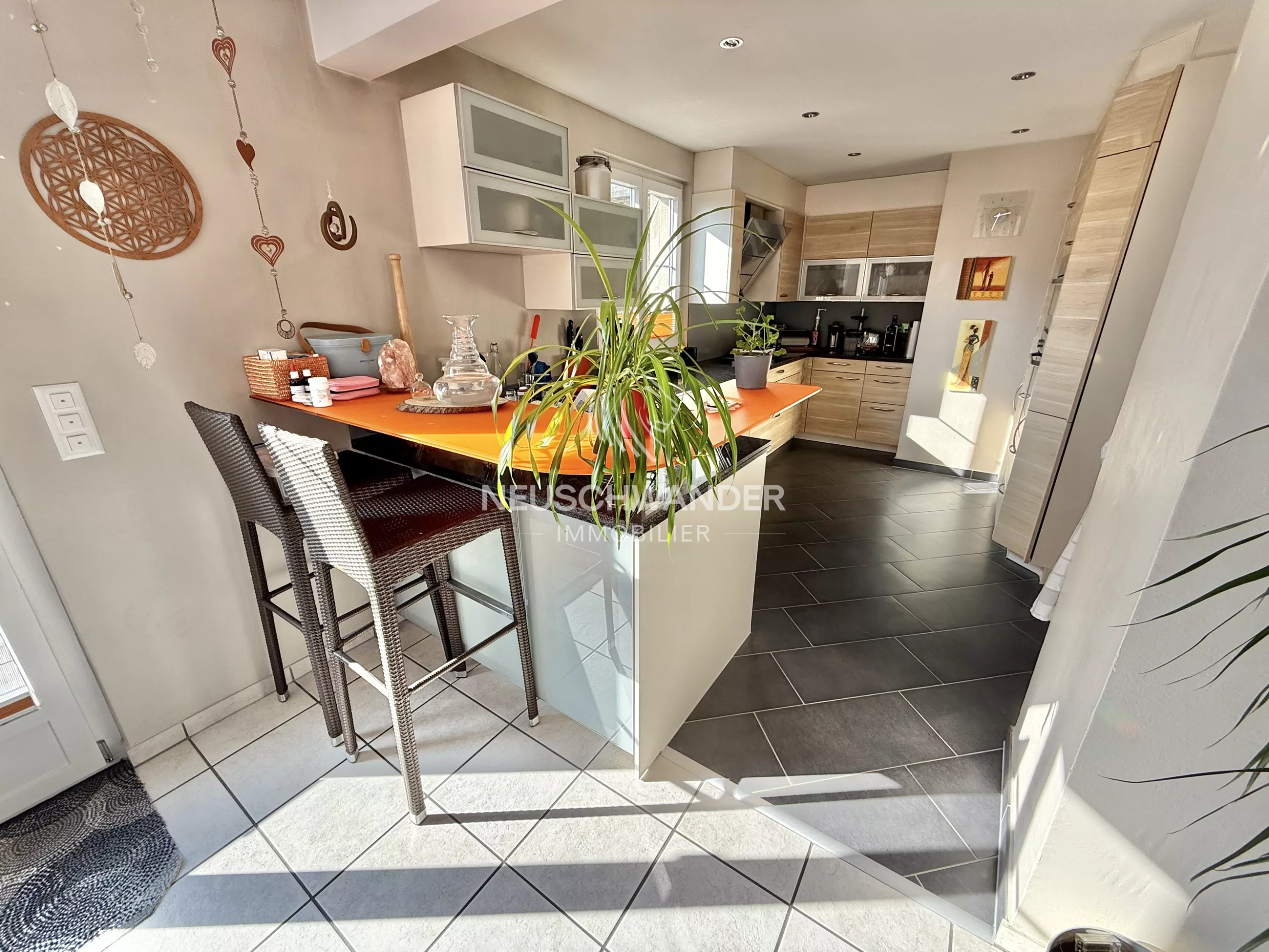 - 1 cuisine ouverte entièrement agencée avec un bar 11.8 m²
