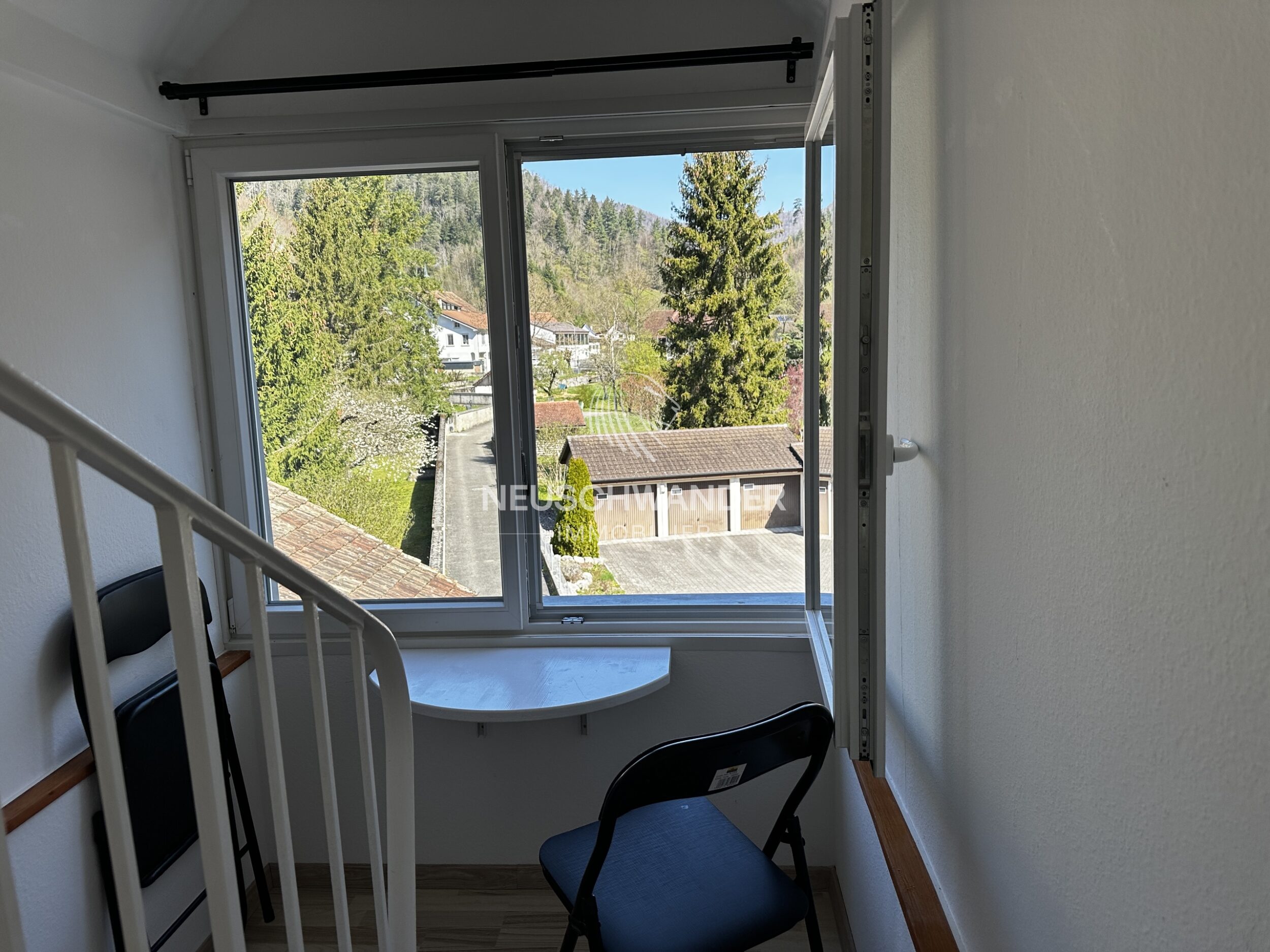 À proximité, des espaces verts invitent à la détente et à la promenade. La maison est également proche d’un accès à l’autoroute et à moins de 4 km de la gare de Delémont. Les transports en commun sont réguliers et les bruits de circulation et de trains restent très faibles.